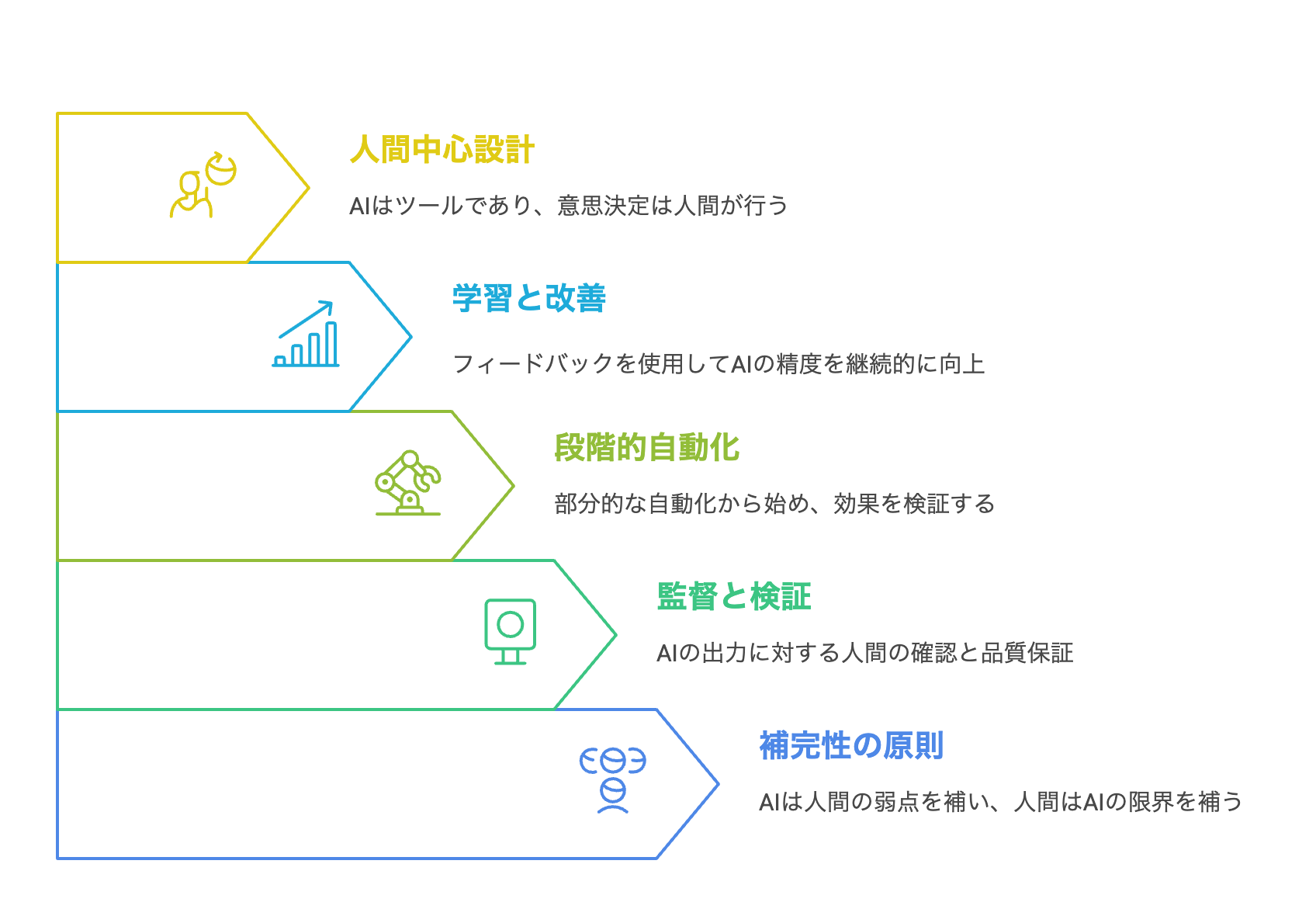 以下の原則に基づいて、AIと人間の役割を設計することが効果的です。